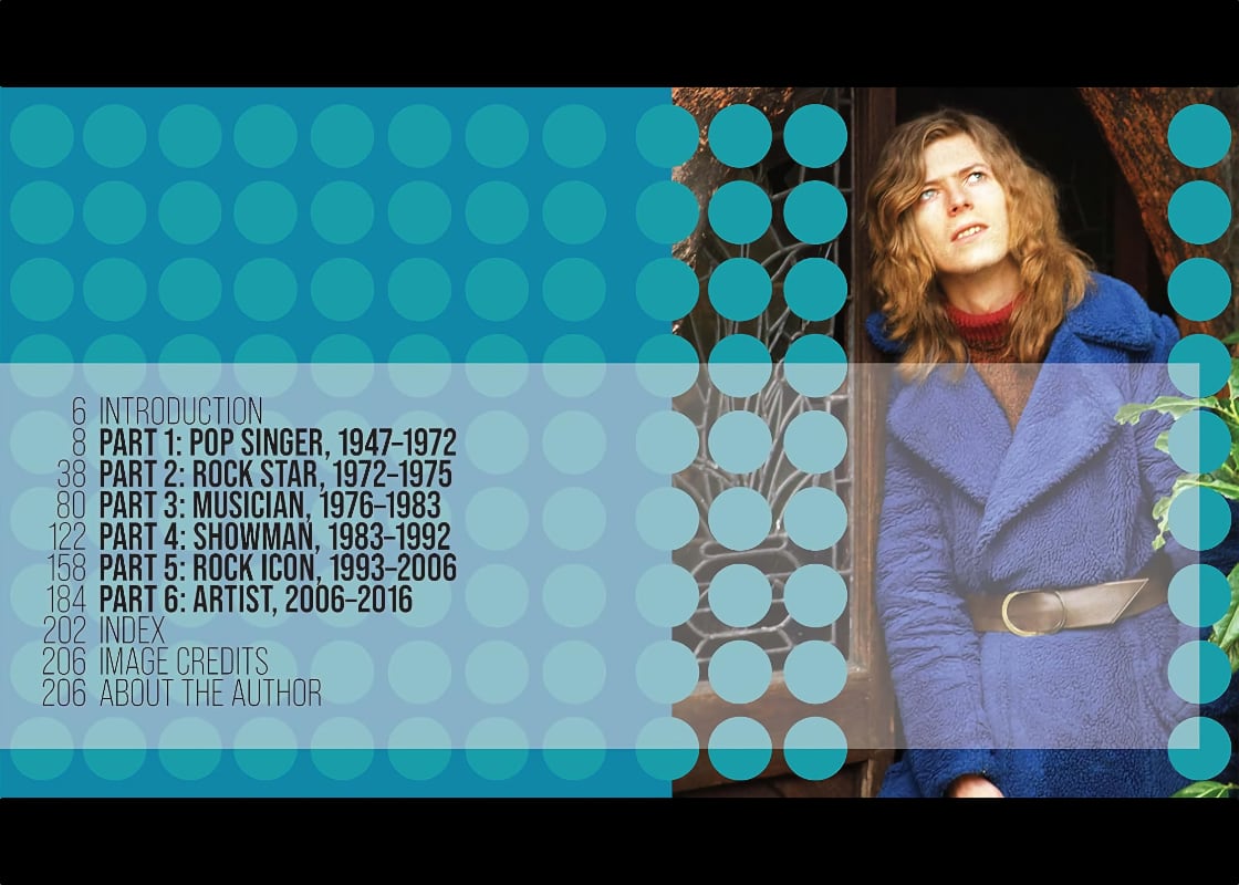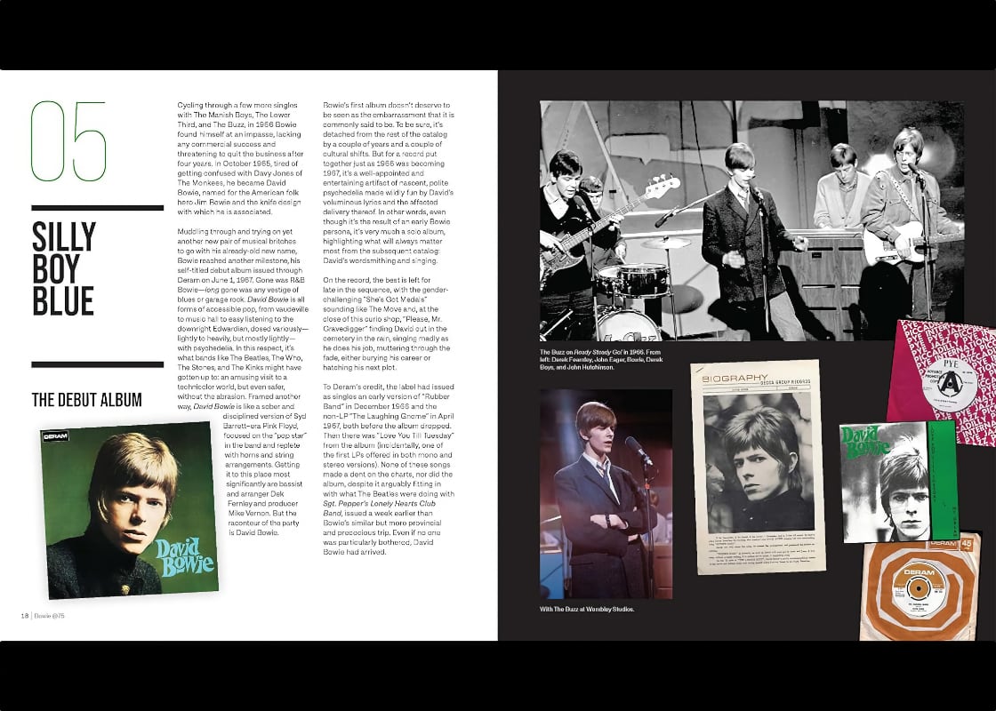 In Bowie@75, I first curate and then celebrate 75 David Bowie career highlights, milestones and events good and bad, including in that list of 75, every studio album. Along with the text is a panorama of photography—live shots, studio, memorabilia—of every stripe imaginable, approximately 350 pictures in all.