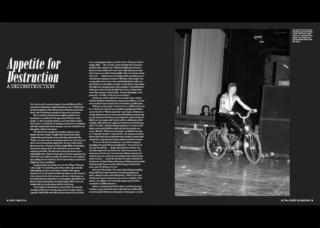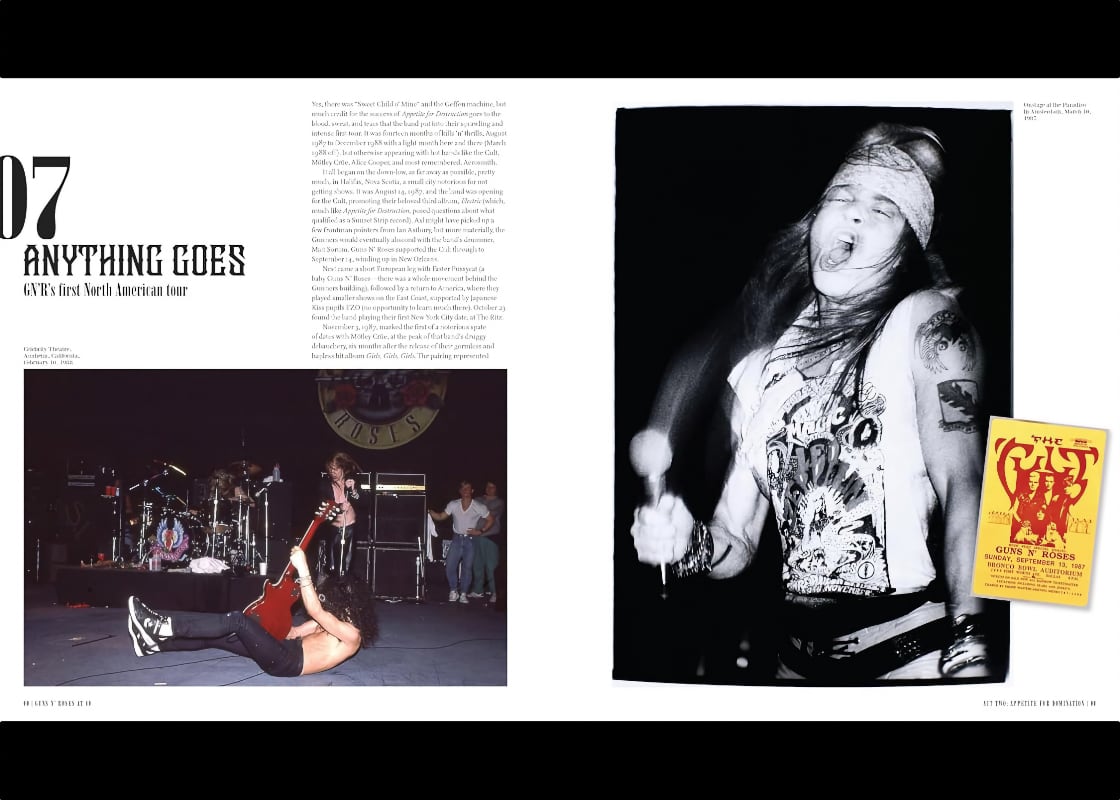 is my new, swell, gorgeously-appointed coffee table book on Axl, Slash, Duff and the rest of the bad boys of dirty hair metal. The concept is a look at 40 career highlights, presented chronologically. If you like AC/DC at 50, Bowie at 75, Kiss at 50 and Van Halen at 50—and if you fancy a trip to “Paradise City”—then this hardcover, full color-throughout book is for you.